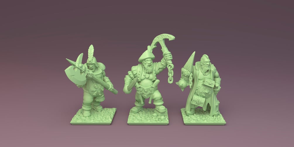 Ogres in 10 mm scale. Files are provided fully pre-supported and ready-to-print resin 3D printer. Thre stripes Ogres and nine solo figures. Also included are models without support and bases.