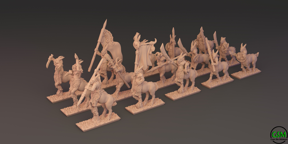 Centigors in 10 mm scale. Files are provided fully pre-supported and ready-to-print resin 3D printer. 8 stripes of Centigors and 15 solo figures. Also included are models without support and bases.