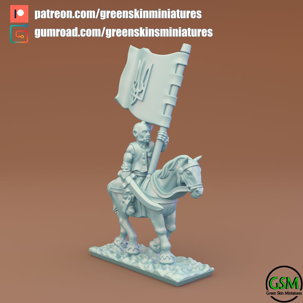 Cossack banner in 10 mm scale. Files are provided fully pre-supported and ready-to-print resin 3D printer. Also included are models without support and bases.