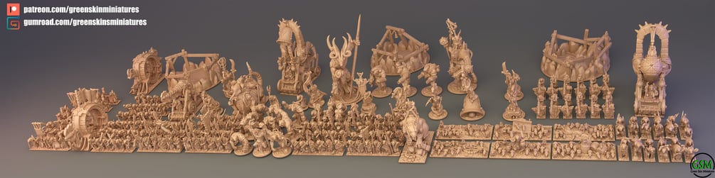 Skaven Army Pack in 10 mm scale. Files are provided fully pre-supported and ready-to-print resin 3D printer.